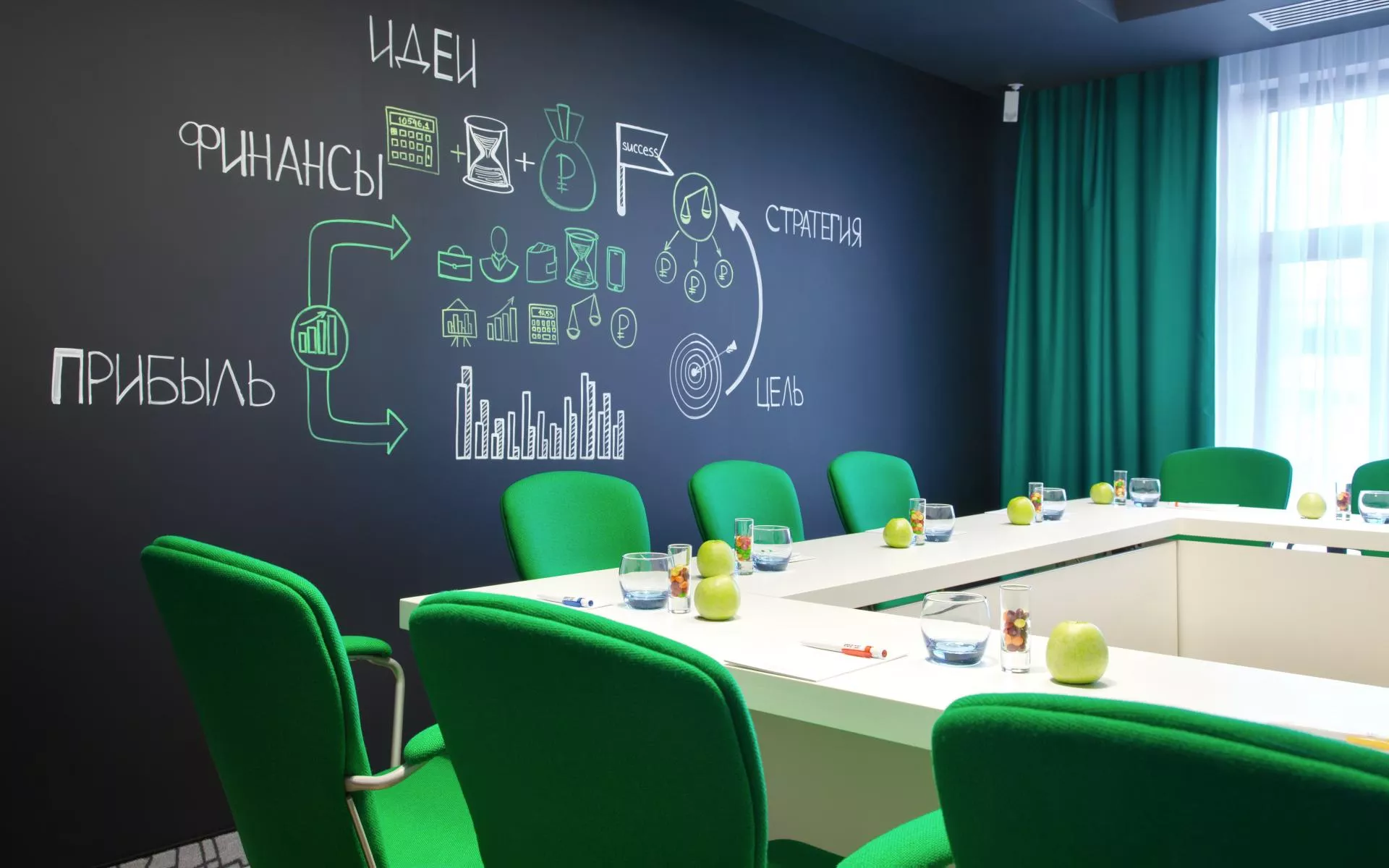 Этот небольшой, но многофункциональный зал идеально подходит для различных встреч, совещаний совета директоров или креативного обмена активными идеями.
